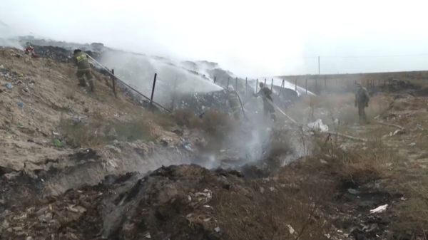 - Жағдай қиын болса да, бүкіл жеке құрам жұмыс істеуде. Ауаның ластануы және қатты жануы, қазіргі таңда ашық оттар жоқ, тек қана бықсу боп жатыр. Полигонның негізгі көлемі 35 гектар шамасында. Толықтай оқшауланғаннан кейін ақпарат толықтай берілетін болады.