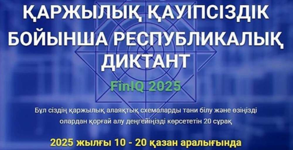 Азаматтардың қаржылық сауаттылығын арттыруға және алаяқтық схемалардан қорғану дағдыларын қалыптастыруға бағытталған Қаржылық қауіпсіздік бойынша республикалық диктант-тест өтуде.